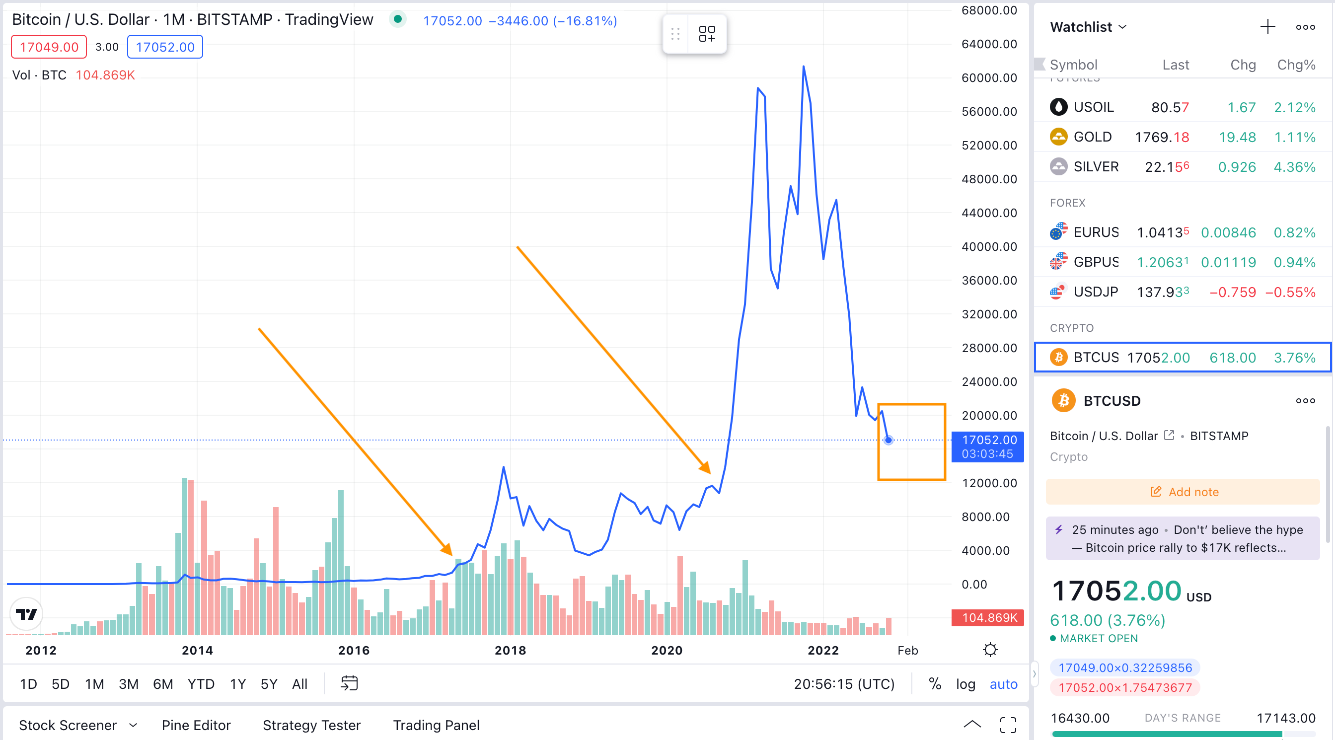 If you look at this chart you can see that BTC is trading at/near the pre-pandemic trading price. It may hurt to look at this, but it is a helpful exercise.